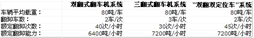 以當(dāng)下較為普遍的C80型敞車為例,對三種翻運系統(tǒng)的產(chǎn)能進行對比: