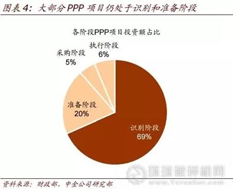從項目進(jìn)展看,大部分ppp項目仍處于識別階段,約占總投資額的69%;處于準(zhǔn)備、采購和執(zhí)行階段的項目投資額占比分別為20%、5%和6%。(圖表4)