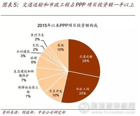 從投向看,交通運(yùn)輸和市政工程投資額占比較大,占ppp項目投資額一半以上。(圖表5)