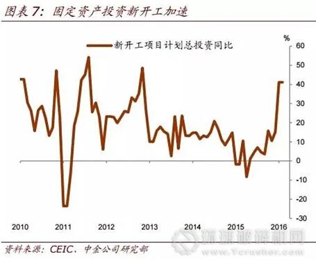 項目審批提速帶動建筑企業(yè)訂單和固定資產(chǎn)投資新開工增長。根據(jù)中金工業(yè)組對所覆蓋的建筑央企的統(tǒng)計,2015年代表性建筑央企簽訂的基建投資合同金額增長17.1%,增速比2014年的5.1%明顯提升。去年四季度以來,統(tǒng)計局公布的固定資產(chǎn)投資新開工項目增速出現(xiàn)回升;今年1~2月,固定資產(chǎn)投資新開工項目計劃投資額同比大幅增長41%(圖表7).
