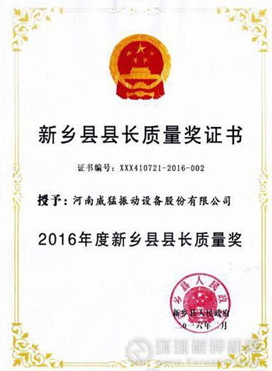 河南威猛獲“2016年度新鄉縣縣長質量獎”稱號 振動利用設備行業唯一獲獎企業