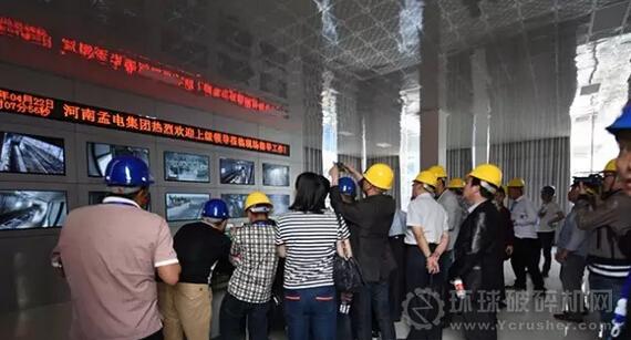 圖為與會(huì)嘉賓在孟電水泥中控室參觀