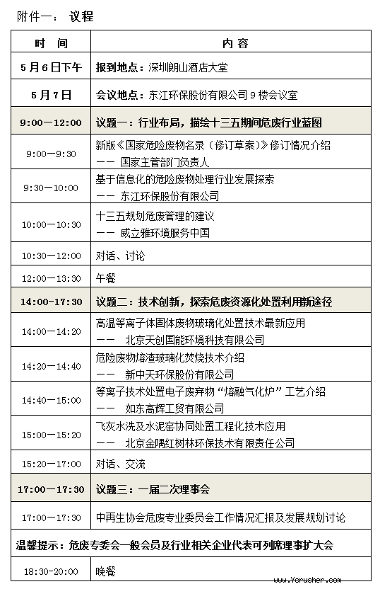 一《危廢處置技術(shù)創(chuàng)新經(jīng)驗交流會議程》