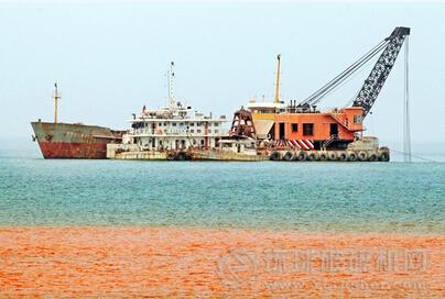 作業(yè)船只正在疏浚航道