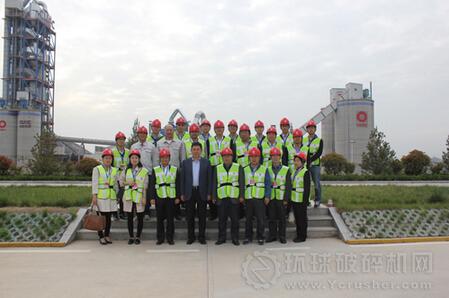 與會(huì)代表在泰安中聯(lián)水泥有限公司5000t/d熟料水泥生產(chǎn)線前合影