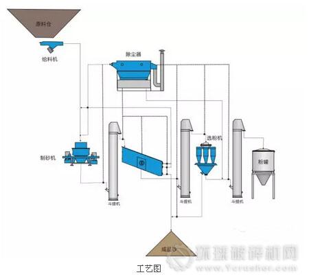 制砂機(jī),該設(shè)備生產(chǎn)粒度穩(wěn)定,具有使用成本低、保養(yǎng)簡(jiǎn)單的特點(diǎn)。其它配套設(shè)備包括1臺(tái)多層細(xì)粒篩分機(jī)、1臺(tái)高效選粉機(jī)、1套環(huán)保除塵設(shè)備、3套斗式