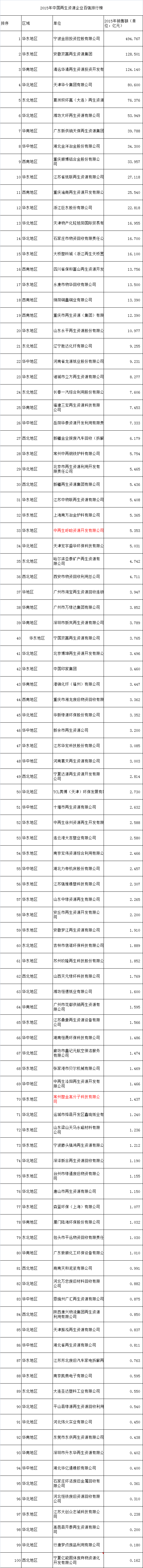 2015年中國再生資源百強企業(yè)排行重磅出爐