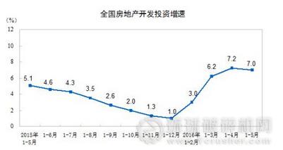 2016年1-5月份,全國房地產(chǎn)開發(fā)投資34564億元,同比名義增長7.0%,增速比1-4月份回落0.2個百分點。其中,住宅投資23118億元,增長6.8%,增速提高0.4個百分點。住宅投資占房地產(chǎn)開發(fā)投資的比重為66.9%。