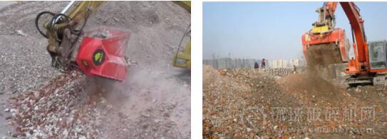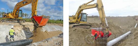 破碎鏟斗在管道管線的埋設(shè)施工中,為了保證管道管線不受損害,同時(shí)保證埋設(shè)完成后的地面有一定的承載能力,往往對填埋管道管線的回填土有嚴(yán)格的要求,需要篩分出細(xì)而均勻的土質(zhì)進(jìn)行回填,有時(shí)甚至還要在回填土中添加水泥或石灰等穩(wěn)定材料進(jìn)行補(bǔ)強(qiáng)。