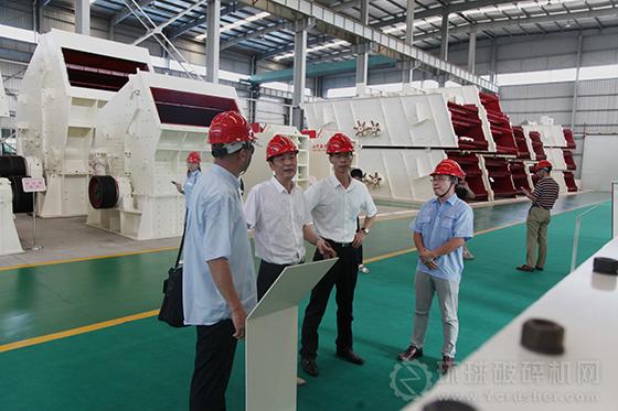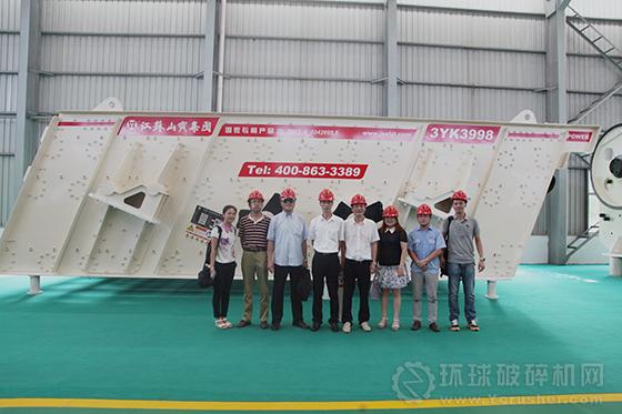 隨后,考察團(tuán)在王宇翔董事長(zhǎng)的陪同下參觀了設(shè)備展示車間。胡會(huì)長(zhǎng)仔細(xì)詢問了每臺(tái)設(shè)備的設(shè)計(jì)參數(shù)和市場(chǎng)優(yōu)勢(shì),并提出了寶貴意見。3YK3998重型圓振動(dòng)篩引起了考察團(tuán)的注意,據(jù)介紹,該振動(dòng)篩有效篩分面積大,最大進(jìn)料粒度為200mm,處理能力為1000~1800t/h,是由山寶集團(tuán)自主研制的一款獲得國(guó)家專利產(chǎn)品的新型智能化圓振動(dòng)篩,產(chǎn)品一經(jīng)面世投產(chǎn),就深獲客戶的好評(píng)。
