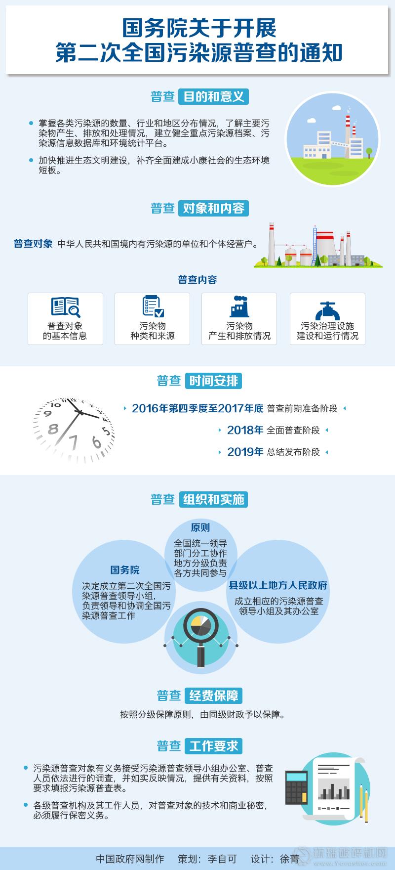 據(jù)這位負(fù)責(zé)人介紹,依據(jù)《全國(guó)污染源普查條例》規(guī)定的每10年開展一次全國(guó)污染源普查工作的要求,經(jīng)征求發(fā)改委等15個(gè)部門和單位意見并達(dá)成一致,國(guó)務(wù)院擬于2017年組織開展第二次全國(guó)污染源普查工作。