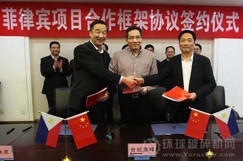 11月10日,在河南投資集團有限公司,中信重工與世紀鼎峰礦業有限公司、河南同力水泥股份有限公司簽訂菲律賓項目一條5000tpd熟料生產線、年產180萬噸水泥生產線及60MW燃煤發電廠建設及環評報告的三方合作框架協議。