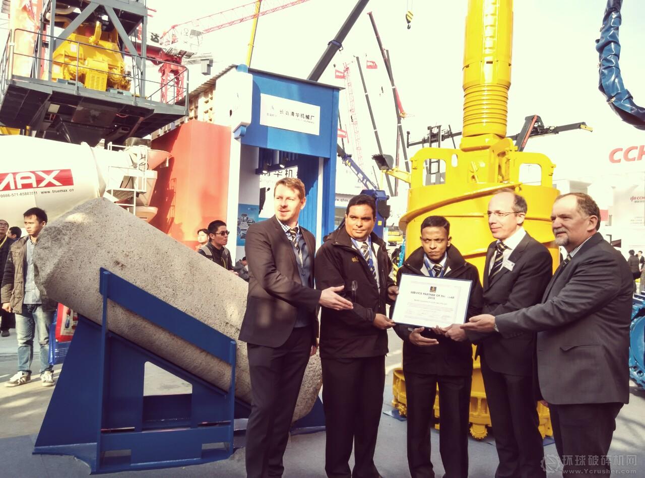 24日下午的2點30分,在露天展位區(qū)記者見證了德國寶峨機械設(shè)備有限公司總裁Dieter Stetter 先生,親自為斯里蘭卡售后團隊頒發(fā)寶峨年度售后服務(wù)伙伴頒獎。