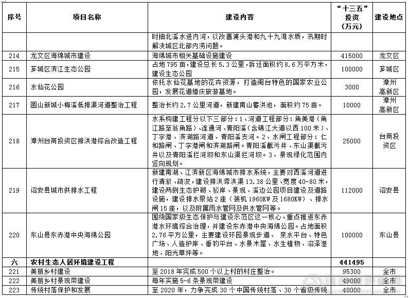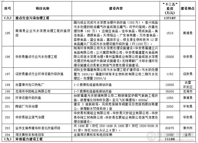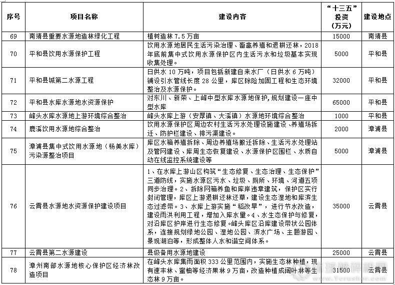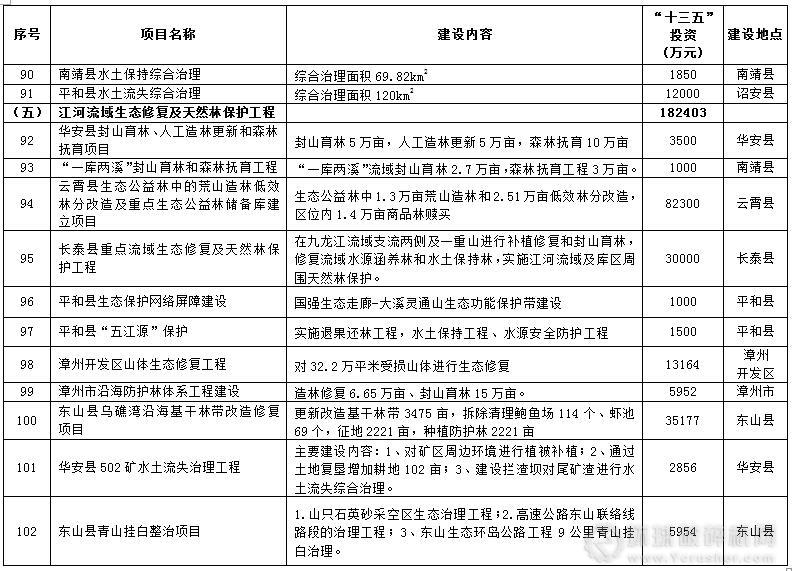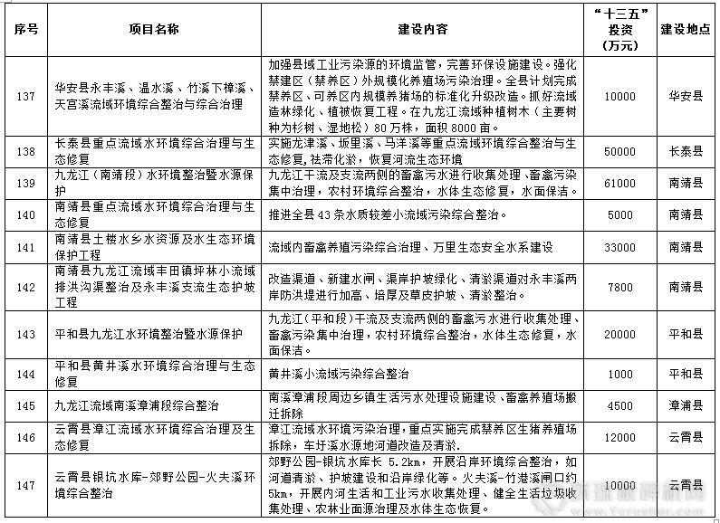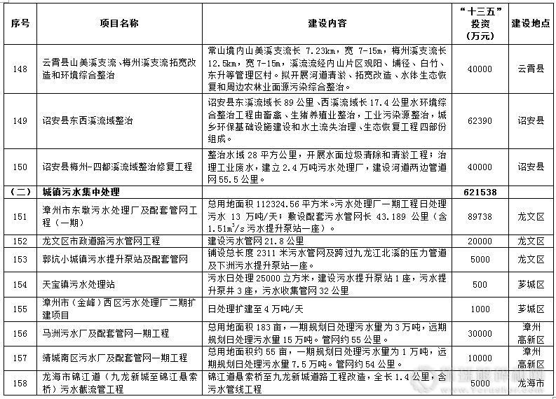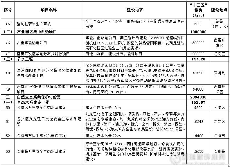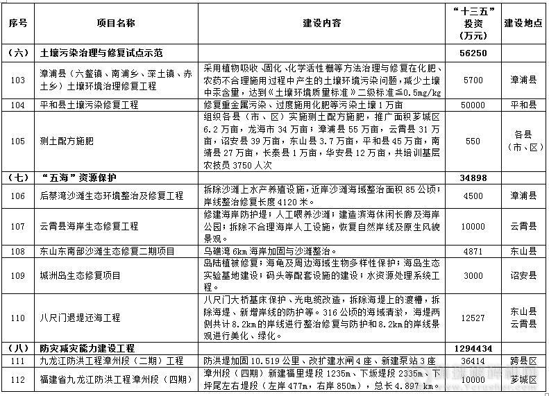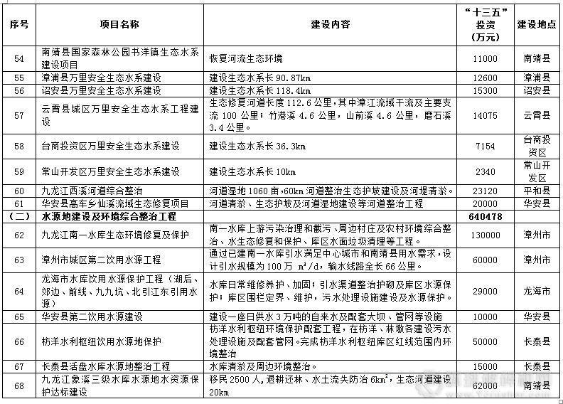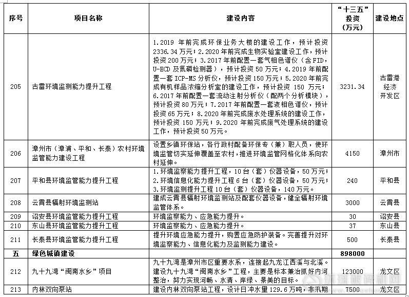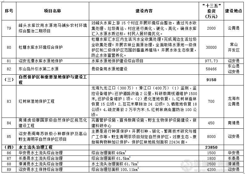 漳州市“十三五”生態市建設專項規劃重點項目表
