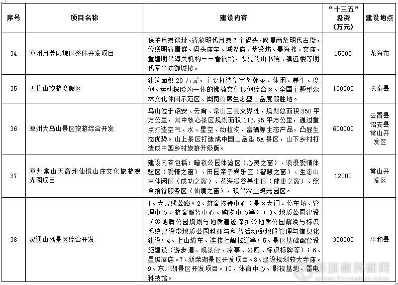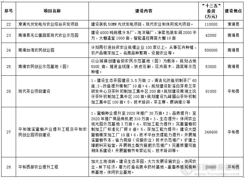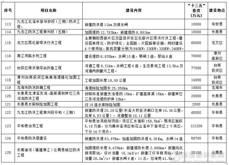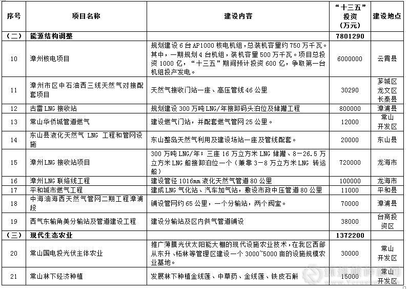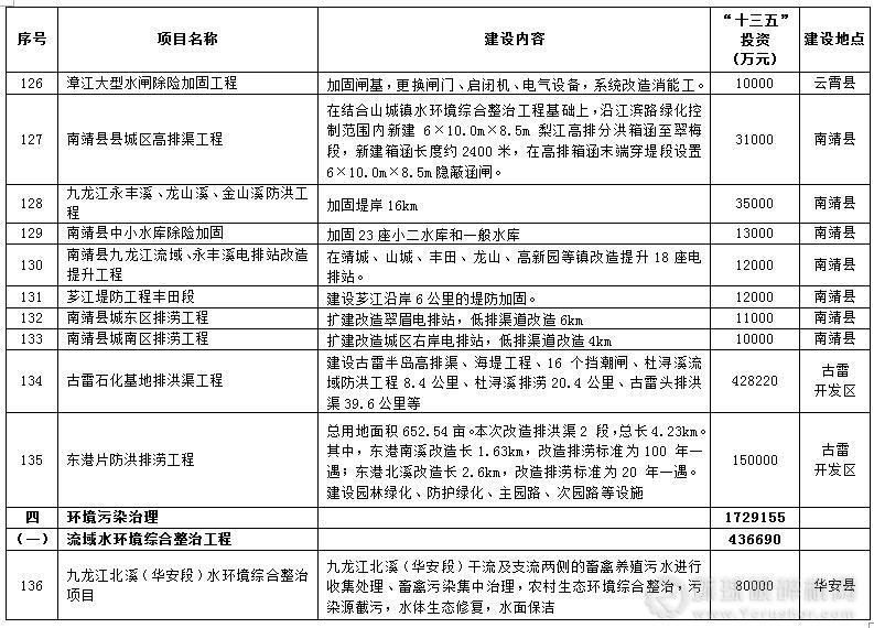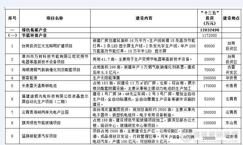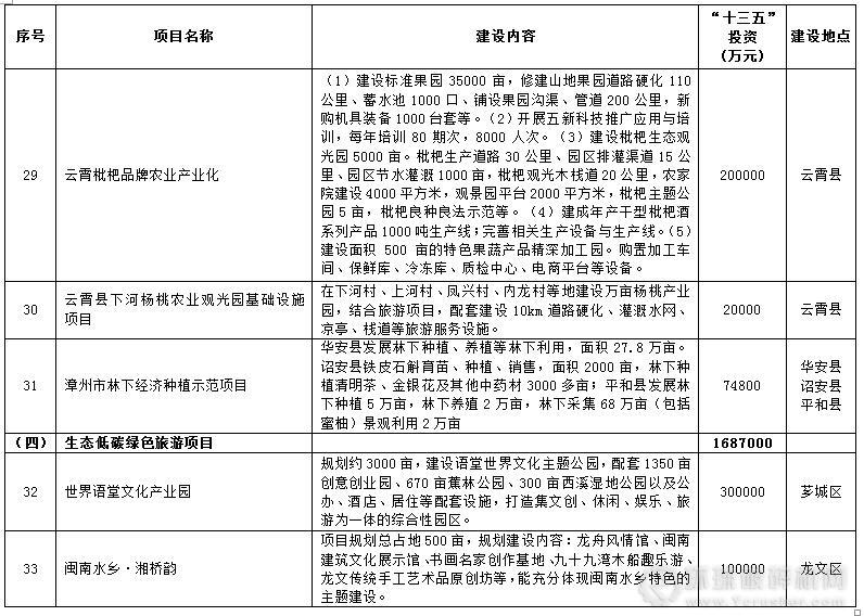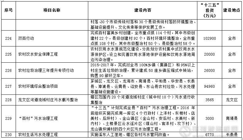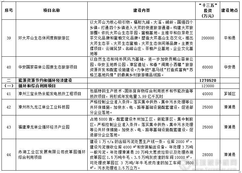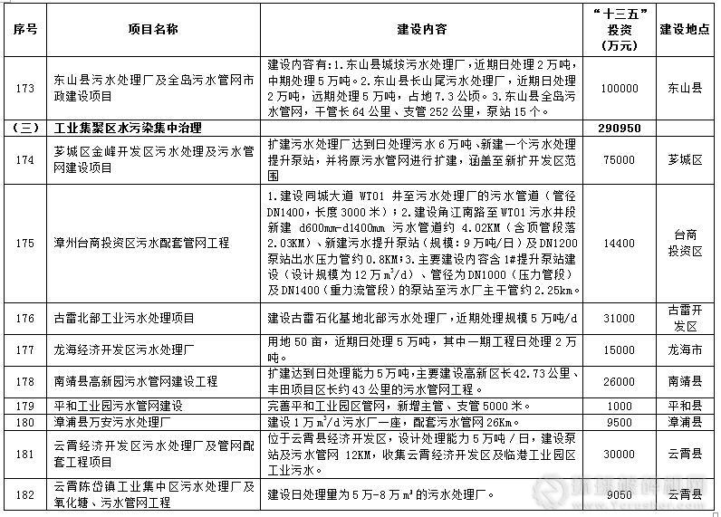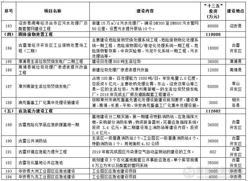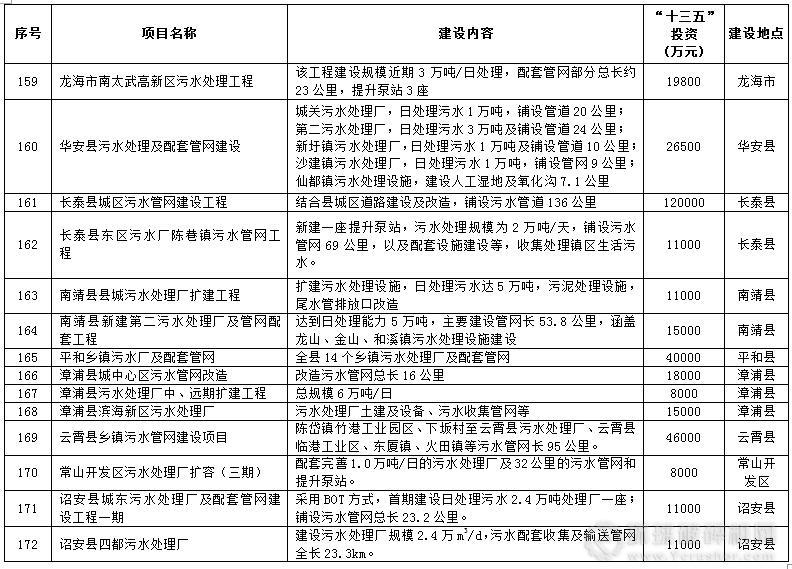 漳州市“十三五”生態市建設專項規劃重點項目表