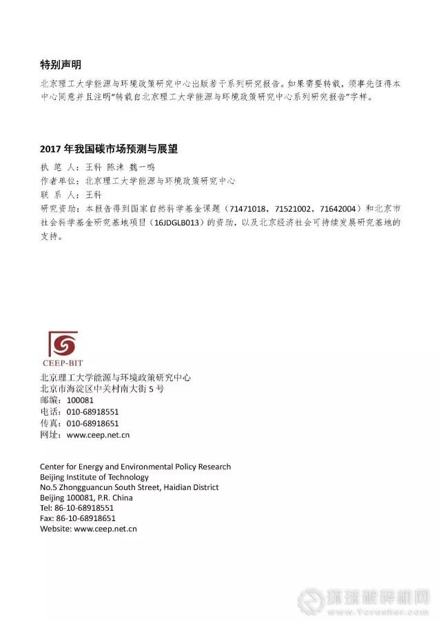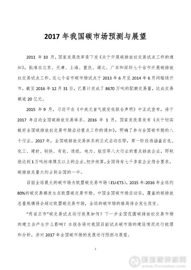 1月8日上午,北京理工大學能源與環境政策研究中心在北京發布了2017年度“能源經濟預測與展望研究報告”,對外發布了6份研究報告。其中《2017年我國碳市場預測與展望》報告指出,計劃于2017年正式啟動的全國碳排放權交易體系將成為全球最大的碳市場。中國碳市場第一階段將涵蓋石化、化工、建材、鋼鐵、有色、造紙、電力、航空等八大行業的重點排放企業,即耗能達到1萬噸標準煤及以上的企業。