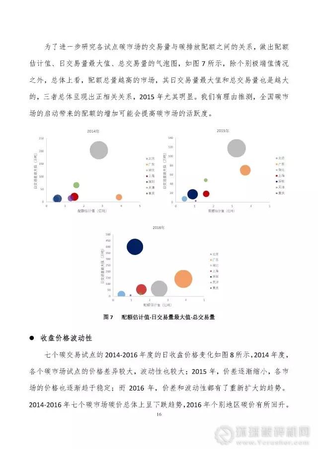 根據初步核算,全國將有七千多家企業符合要求,碳排放總量大約占到全國一半,約為40~50億噸二氧化碳。這意味著,全國碳市場啟動后,中國碳市場的規模將大大超過目前全球最大的歐盟碳市場,全球碳市場格局將會發生改變。《2017年我國碳市場預測與展望》預測,全國碳市場啟動初期的價格年平均水平將在30~40元/噸,第一個履約期內碳排放配額現貨交易量約為2~5億噸,交易額約為60~100億元,樂觀情況下將接近200億元。該報告認為,如果之后碳市場覆蓋行業擴展到八大行業之外,并且納入企業的能耗門檻值降低,例如納入年能源消耗在5000噸標煤以上的企業,同時將多種碳金融產品逐漸引入市場,預計全國碳市場交易額可能增加到千億元規模。