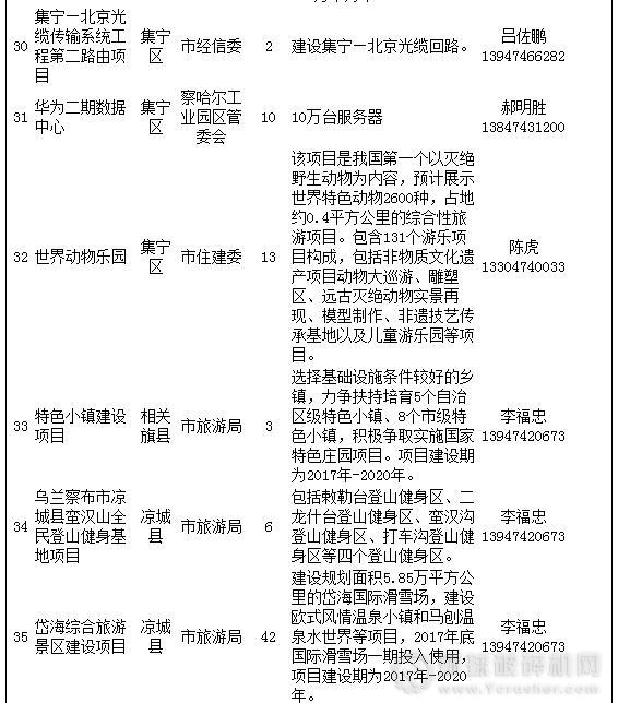 烏蘭察布市PPP項目具體聯系人及電話