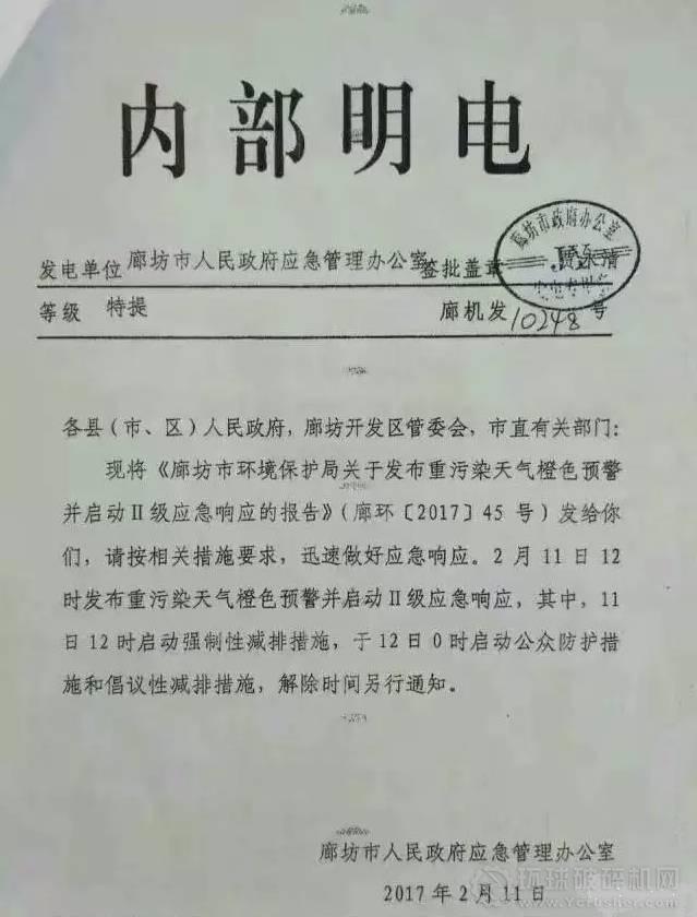 據(jù)了解:環(huán)保部督察組一行12人已到廊坊,為期一個(gè)月到3月15日,將重點(diǎn)檢查企業(yè)的環(huán)保手續(xù),重污染天氣應(yīng)急響應(yīng)落實(shí)情況,污染物排放是否達(dá)標(biāo)等環(huán)保問題。凡是沒有排污許可證的企業(yè)全部關(guān)停,凡是手續(xù)齊全但未通過環(huán)保、安監(jiān) 、消防、城建等相關(guān)部門驗(yàn)收合格的企業(yè)不得復(fù)產(chǎn)。請(qǐng)各企業(yè)高度重視,嚴(yán)格按上級(jí)要求執(zhí)行,頂風(fēng)生產(chǎn)的,縣政府將組織相關(guān)部門對(duì)企業(yè)嚴(yán)厲查處!