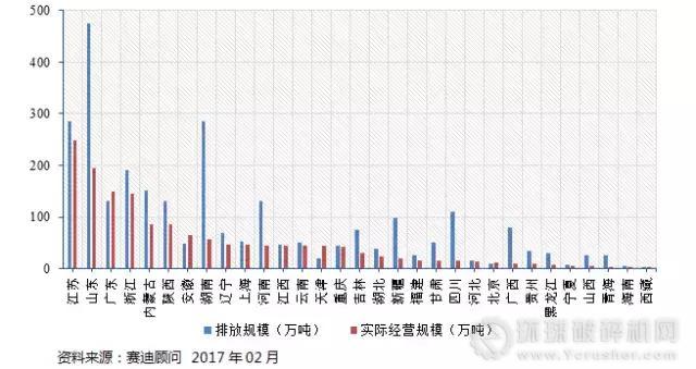 危險廢物經營許可量與排放量錯配明顯,難以有效化解危險廢物的環境風險。危險廢物的排放集中于高載能、重污染行業,山東、江蘇、內蒙古、河南等是重要的排放地區,但危險廢物的整體經營能力與重點排放地區并不匹配。2015年,山東省工業危險廢物的排放量近500萬噸,高居全國之首,但實際處理規模不足200萬噸,處理率不足40%;河南省危險廢物排放量約130萬噸,實際處理規模僅45萬噸;廣東省危險廢物排放量與河南省相當,但處理量高于排放量130萬噸。經營許可規模與重點排放區域的錯配導致危險廢物經營許可資質難以盤活,危險廢物難以得到有效處理處置,造成潛在的環境風險。