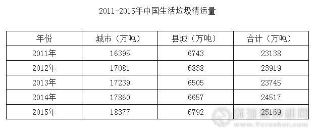 2011-2015生活垃圾清運量(來源:公開數(shù)據(jù))
