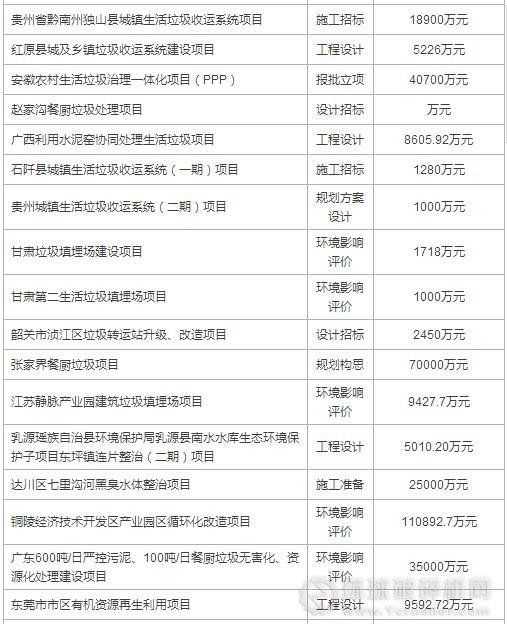 2017年3月份國內(nèi)擬在建垃圾處理項目,涉及垃圾資源化、餐廚垃圾等環(huán)保項目。詳情如下: