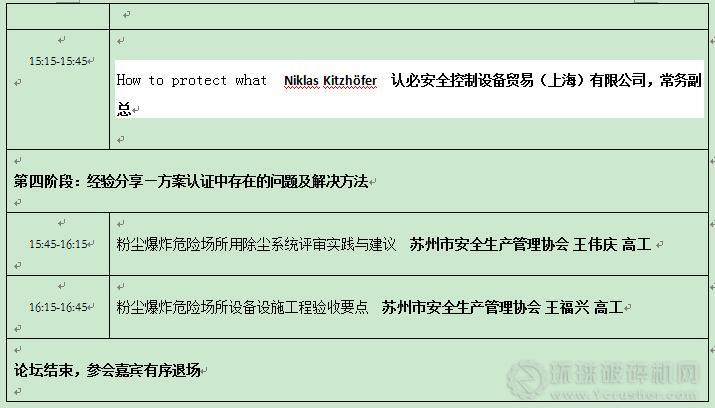 “十三五”時期,安全生產工作面臨許多有利條件和發展機遇。黨中央、國務院高度重視安全生產工作,作出了一系列重大決策部署,深入推進安全生產領域改革發展,為安全生產提供了強大政策支持;地方各級黨委政府加強領導、強化監管,狠抓安全生產責任落實,為安全生產工作提供了有力的組織保障。此次蘇州市粉塵防爆技術研討會暨展覽會,將不斷拓展行業的外延,整合產業各個環節資源,搭建交流平臺,在工業安全和環保領域加強行業內外的交流合作。吸引了昆山工統環保、昆山蒂恒環保、蘇州普綠法環保、蘇州德爾格環保、淳然環境等防爆除塵領域標桿企業攜帶符合監管標準的新型防爆型除塵器現場展示;AMANO、匯樂環保等國內外知名防爆除塵器生產企業也紛紛攜帶新品在這個國內最高水平的粉塵防爆平臺展示交流;GreCon, REMBE, CV Technology, STIF,上海爵格、上海諾愷、徐州八方、康洛吉、中泰安科、南京艾伊、同飛科技等國內外知名企業將攜帶抑爆裝置、無焰泄放裝置、隔爆閥、爆破板、粉塵監測儀器、分析設備等粉塵防爆領域先進的防爆零部件產品及周邊產品現場講解如何為企業安全生產保駕護航。