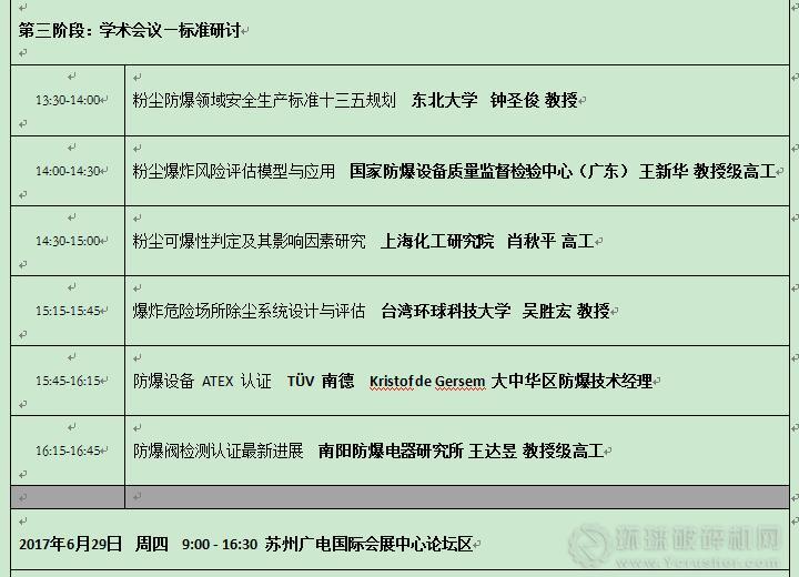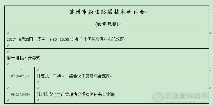 據悉,為繼續保持蘇州市在全國粉塵防治領域的先行地位,推進生產安全管理工作,幫助社會各界加強生產安全意識,建立和完善安全生產規范,提高安全監管部門,生產經營單位,技術服務機構相關人員工業防爆知識技能,由東北大學工業爆炸及防護研究所、蘇州市安全生產管理協會、蘇州市壓鑄技術協會共同主辦,蘇州廣電國際會展中心承辦“2017第二屆蘇州市粉塵防爆技術研討會暨展覽會”的定于2017年6月28日至30日在蘇州廣電國際會展中心舉辦。