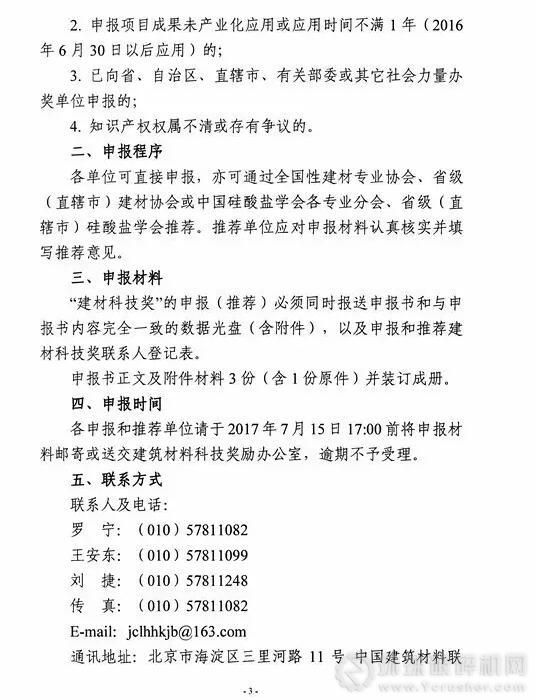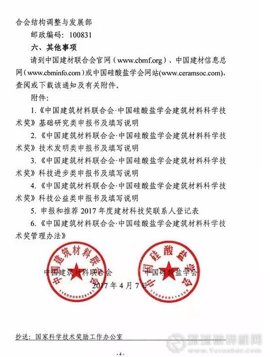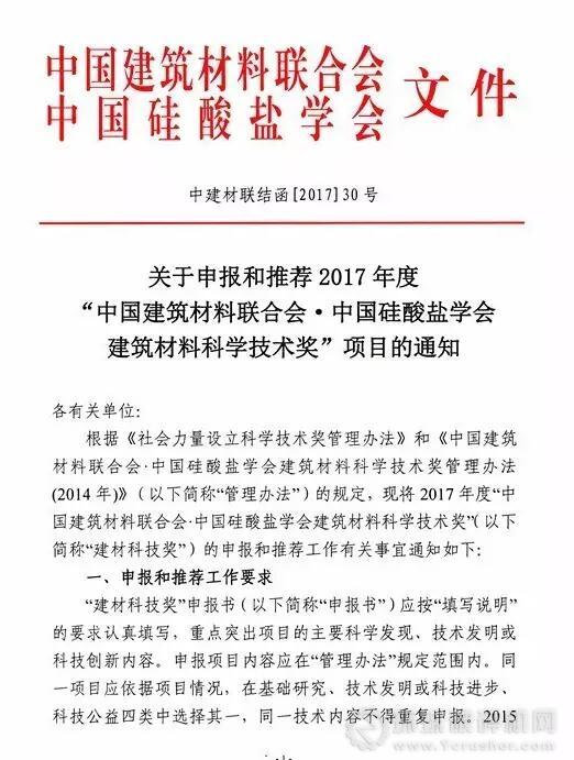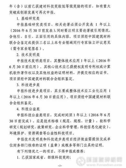 2017年度“建筑材料科學技術獎”項目申報和推薦工作已經(jīng)開始。2013年湖州新開元碎石有限公司申報的“機制砂石細粉高效回收與廢水循環(huán)利用工藝技術研究與應用”項目獲得了該年度部級科技進步獎,已經(jīng)走在砂石骨料行業(yè)前列。各會員和相關單位可根據(jù)本單位的情況進行申報,以推進砂石骨料行業(yè)技術進步及影響力。