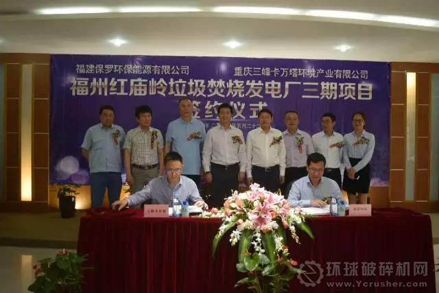5月22日下午,在福州紅廟嶺垃圾焚燒發電有限公司一樓會議廳舉行了紅廟嶺三期項目(2×600噸/天)建設承包合同簽約儀式。投資方北京保羅投資集團董事長倪新財,三峰環境集團公司董事長雷欽平、副總經理司景忠等出席儀式并致辭。