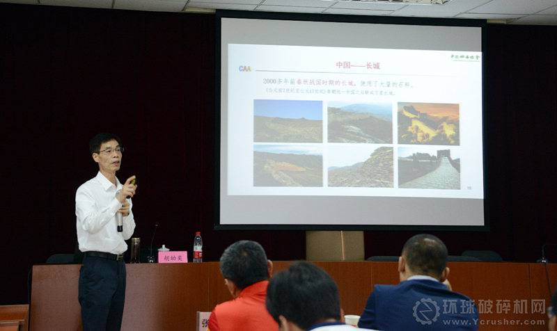中國砂石協會會長胡幼奕作題為《砂石骨料和裝備行業的現狀和綠色發展》的主旨演講。胡會長采取圖文并茂的表現形式,以生動的語言重點從行業發展、典型介紹、產品應用、行業現狀和形勢等方面為學員進行了深入細致的講解。在行業發展歷史章節,他圍繞行業起步、天然砂石實現機械化開采、機制砂石快速發展、產業轉型升級這四個階段向學員們進行了講授。在典型企業介紹章節,他系統總結了行業內標桿企業在項目投資布局、生產線建設、技術工藝、環境修復等方面的成功案例,與學員們分享了經驗。在產品應用章節,他從基礎設施建設、混凝土配比、海綿城市發展、再生材料研發和推廣等方面介紹了砂石骨料及其衍生品的廣泛應用領域,指明了追求“高品質”產品的發展方向。
