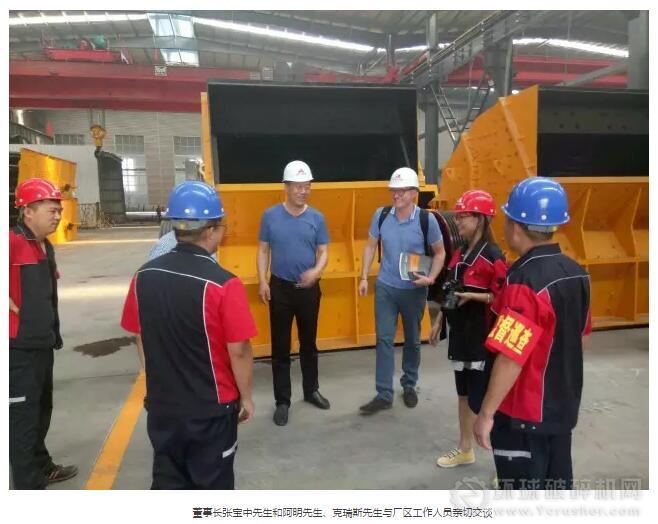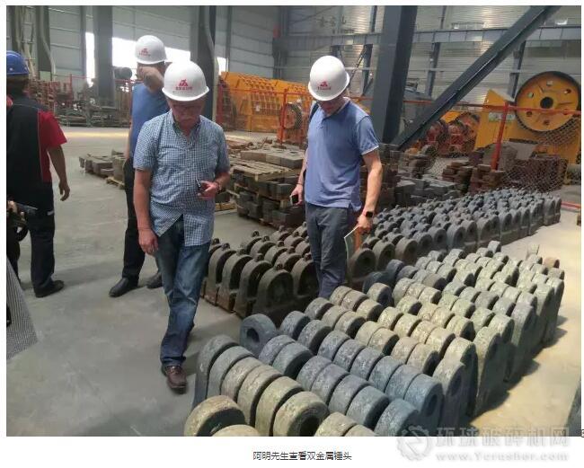 華亨鑄件董事長張寶中先生和阿明先生、克瑞斯先生與山東金寶山礦業機械有限公司董事長房士奎先生進行了親切交談,雙方就雙金屬錘頭的一些問題和未來合作方向進行了一系列的研討,并取得了可人的成果。并在考察當天,在山東金寶山礦業機械有限公司董事長房士奎的陪同下,參觀了金寶山礦業機械有限公司的車間。