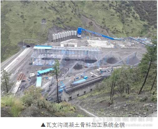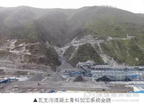 據悉,該項目工程由中南院砂石工程所承接,瓦支溝混凝土骨料加工系統采用粗碎開路,中細碎與篩分構成閉路生產大石,超細碎與篩分構成閉路生產中、小石和成品砂,輔以棒磨機制砂調整細度模數,干法生產為主的工藝流程。系統運行的可靠,且滿足大壩主體工程對混凝土骨料的級配要求。工藝流程調整靈活、產品質量可控,特別是產品的級配組成、物料粒形、石粉含量、含水量等技術指標均能得到有效的控制。由于該系統原料為變質砂巖和粉砂質板巖,流程設計將所有成品砂石均通過沖擊式破碎機整形,有效地降低了成品砂石中針片狀含量。
