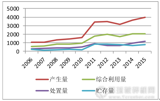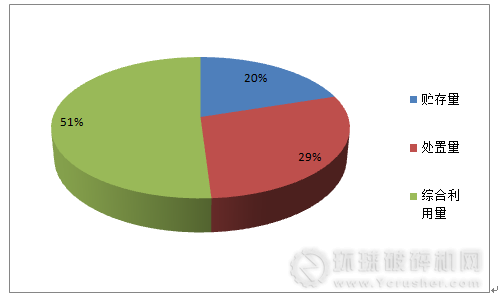 2015年全國共產生危險廢物3976.1萬噸,利用危險廢物2049.7萬噸(51%),處物置危險廢物1174.0萬噸(29%),貯存量810.3萬噸(20%)。