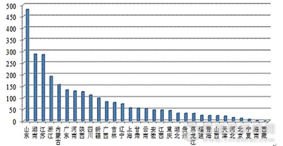 工業危險廢物產生量排在前三位的省是山東、湖南、江蘇,主要集中在東部工業發達地區。