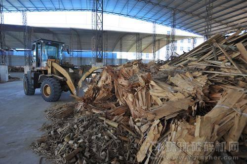 竹木廢料、枯枝樹皮被送到裝飾建材生產企業,準備加工。