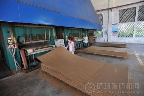 通過添加粘合劑和高溫壓制,一塊塊板材成型。