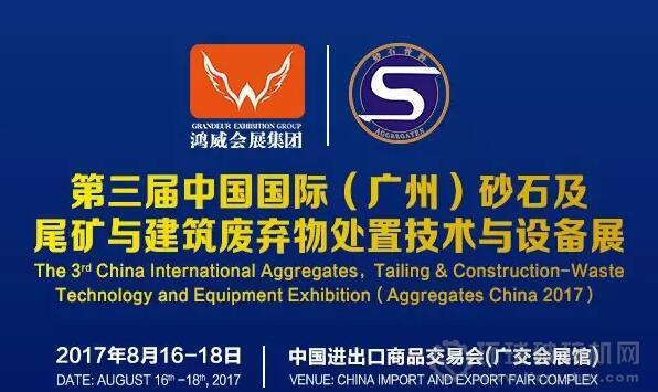 2017第三屆中國國際(廣州)砂石及尾礦與建筑廢棄物處置技術(shù)與設(shè)備展將于2017年8月16日-18日在廣州·廣交會展館隆重開展。磊蒙機(jī)械即將攜帶產(chǎn)品參加8月廣州砂石展,展位號:T7 歡迎大家蒞臨參觀、交流與指導(dǎo)!