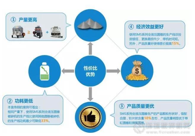 SMS系列多缸液壓圓錐破碎機(jī)具有優(yōu)越的性價比優(yōu)勢: