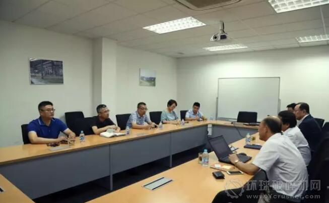 來訪領導還在山美股份副總經理張元凱的陪同下參觀了山美的生產車間,重點了解了移動式破碎站,顎式破碎機,反擊式破碎機,輕物質分離器等建筑廢棄物處理成套設備的生產情況。
