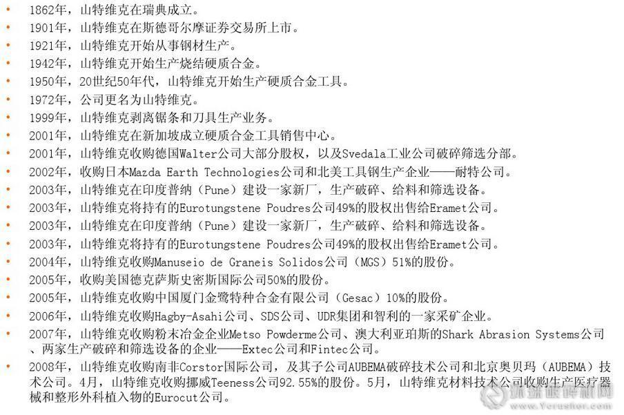 山特維克在時(shí)間的洗禮中,發(fā)展日益壯大,收購(gòu)多家大企業(yè),屬于世界幾百?gòu)?qiáng)企業(yè)之一。
