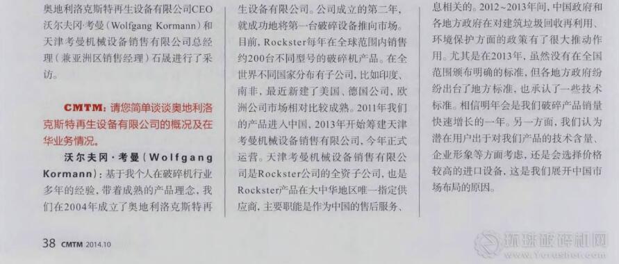 洛克斯特開(kāi)啟中國(guó)業(yè)務(wù)-訪奧地利洛克斯特再生設(shè)備有限公司CEO沃
