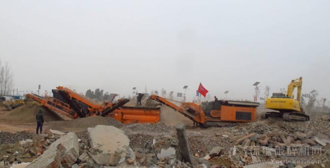 R1100履帶破隨機(jī)建筑垃圾處理現(xiàn)場(chǎng)