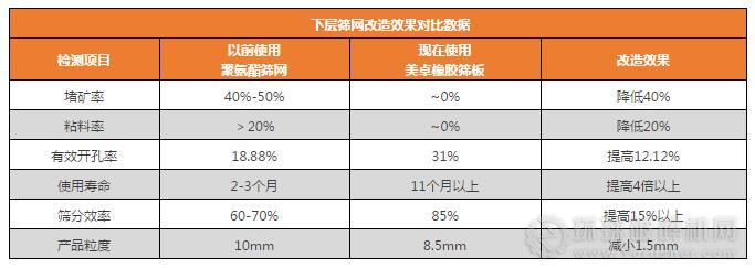 在這種情況下,改造的下層篩網需要優先解決堵礦和粘料問題,提高篩分效率。其次,要減小篩下物產品粒度,降低磨機給礦粒度。同時,還要提高篩板的使用壽命,從而達到降低生產成本的根本目的。