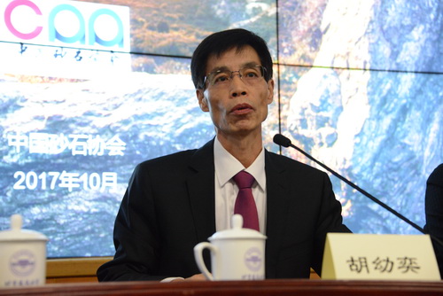 開學儀式中,中國砂石協會會長胡幼奕在致辭中指出: