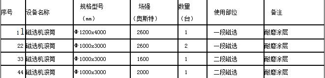 4、招標(biāo)范圍:本次采購磁滾筒為青溝選廠一段磁選機(jī)3臺及二段磁選機(jī)2臺,具