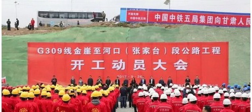 開工時(shí)間:9月26日,中鐵五局承辦的甘肅G309線金崖至河口(張家臺(tái))段公路工程開工動(dòng)員大會(huì)在甘肅省蘭州市舉行。