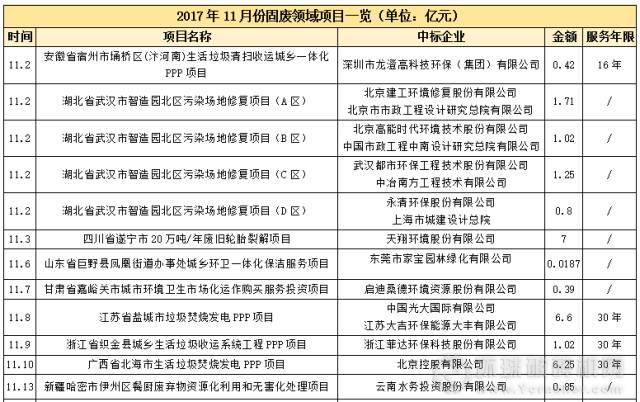 根據中國固廢網不完全統計,11月,固廢領域中標項目高達33個,涉及總金額逾366.91億元。