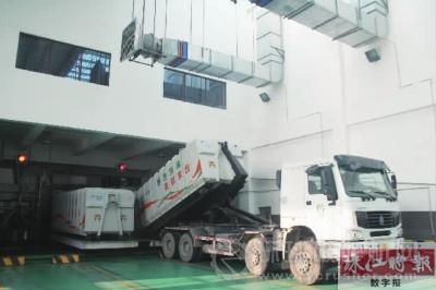 在廣佛交界處的大瀝黃岐岐西大街,保潔公司的車輛每天都會把周邊小區、街道的垃圾運往大瀝東垃圾壓縮中轉站。每天超過500噸的垃圾經垃圾壓縮機擠壓,“推”入特制箱體后,被運往南海固廢處理環保產業園。