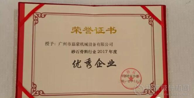 2017年12月10日,廣州市磊蒙機械設備有限公司在本次大會上獲得了全國砂石骨料行業“優秀企業”、’第二屆“新開元杯”全國砂石骨料大賽第三名,由公司代表佘詩平上臺領獎,通過大會獲取獎項,進一步提升了磊蒙機械在礦山破碎篩分行業的地位,也進一步提升了公司在行業的影響力。